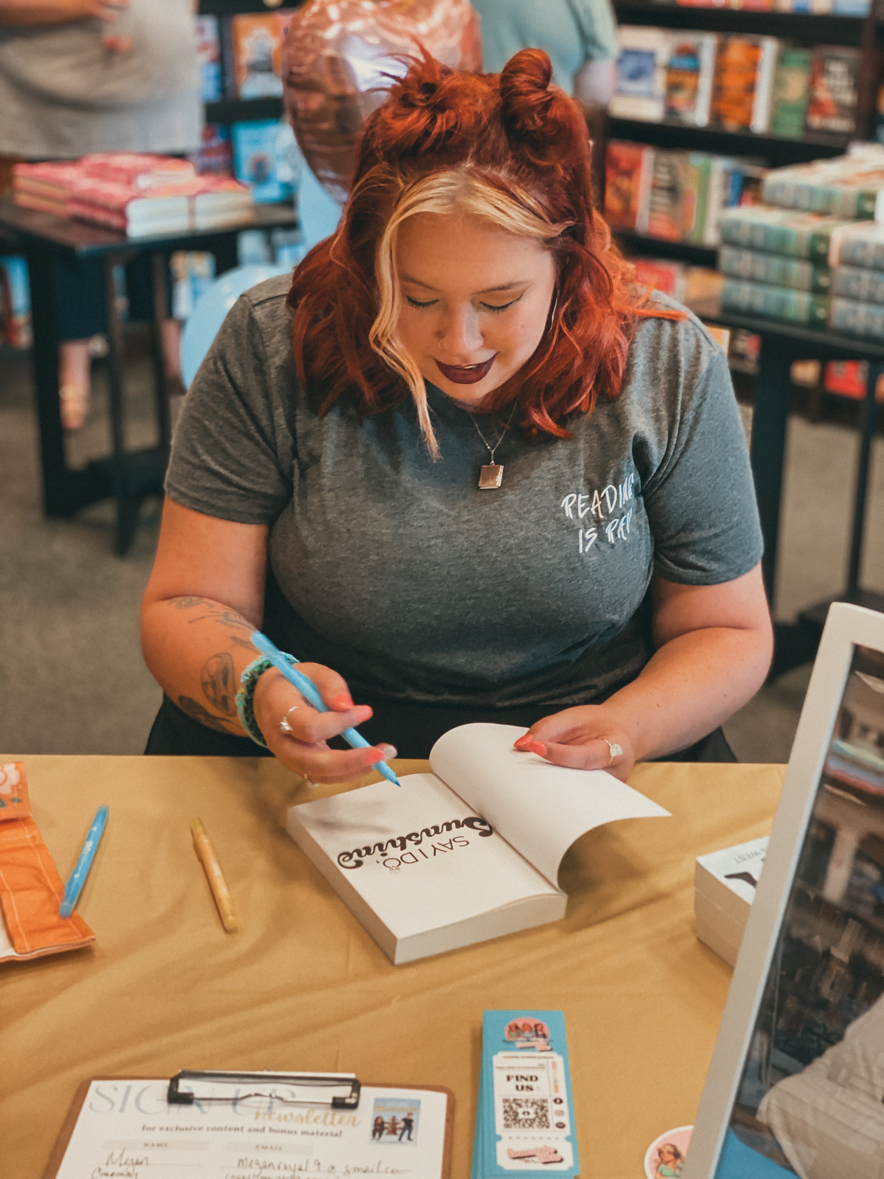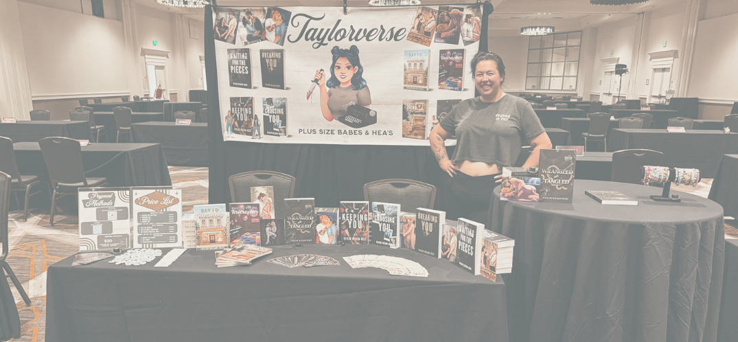 Taylor Wilson-West is a firm believer that the magic of words on a page can transport readers to new places, and finds comfort in making new, albeit fictional, friends. Currently residing in a small town in North Carolina with her husband and two perfect kiddos, she lives off Cheerwine, potatoes, and ranch dressing. When she’s not reading or writing, she can be found shopping at bookstores, adding to her never ending bookshelves. Taylor finds it necessary to have a bookish candle that fits every genre and book character that she has ever fallen in love with. Her favorite moment in any consumable media is when confident, fat main characters get their happily ever after.